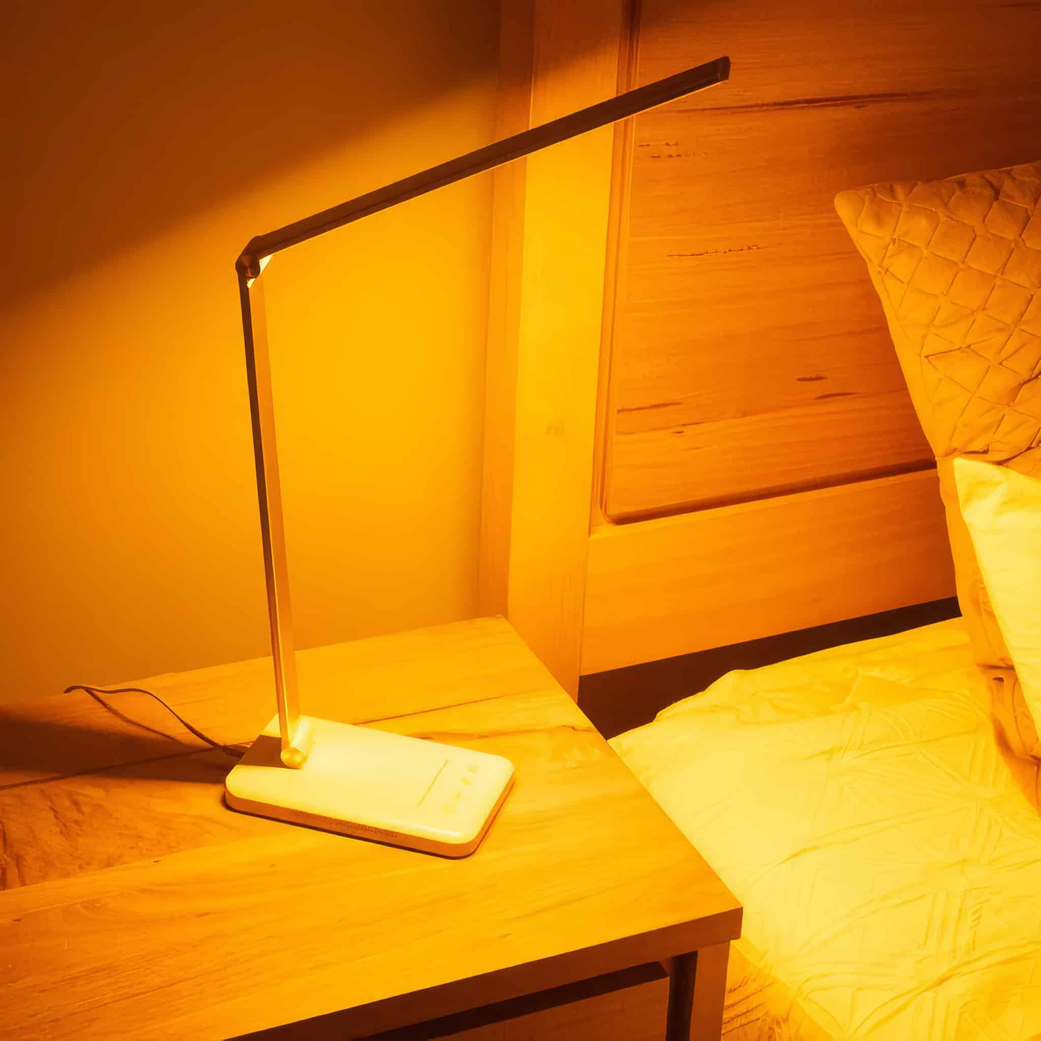 Det røde natlys (tilstand 6) er primært designet til orientering om natten. Til aftenlæsning anbefaler vi tilstand 5 (ravfarvet 1600 K), som giver bedre lysstyrke uden at forstyrre melatonin.