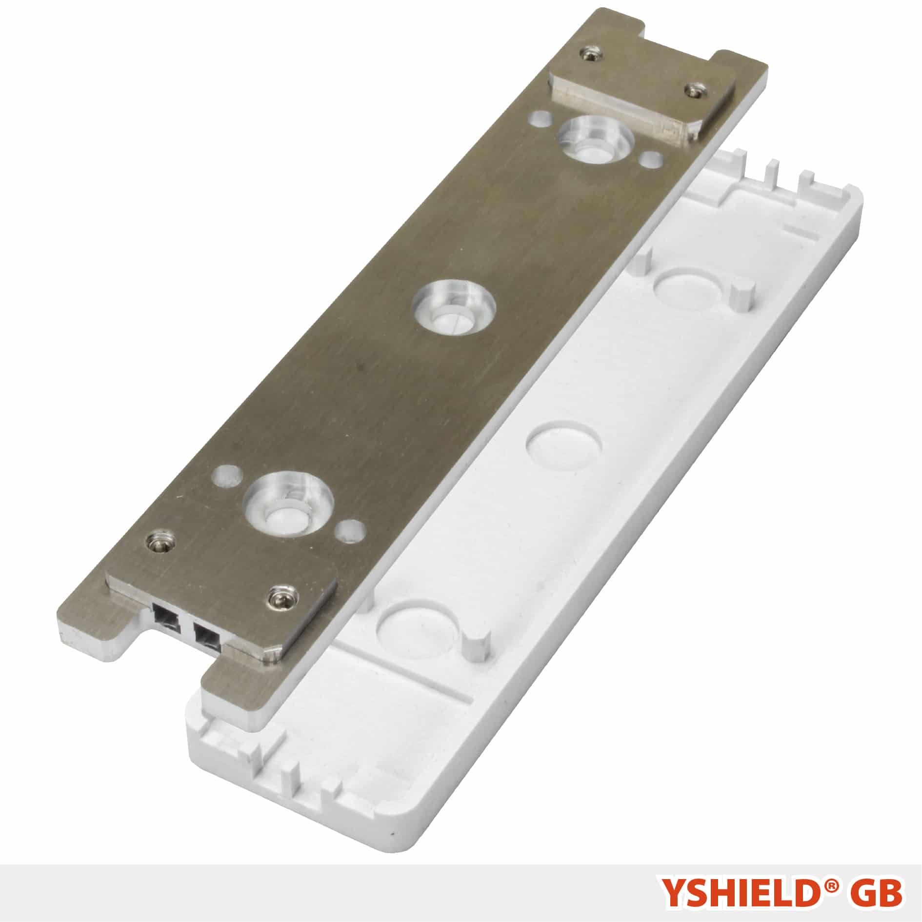 Denne YShield GB Jordingsplade er designet i en form der gør den egnet til diskret montering ved eller under fodpanelet. Pladen kan derefter kobles til jord af en el-installatør. Pladen er kun til indendørs brug.